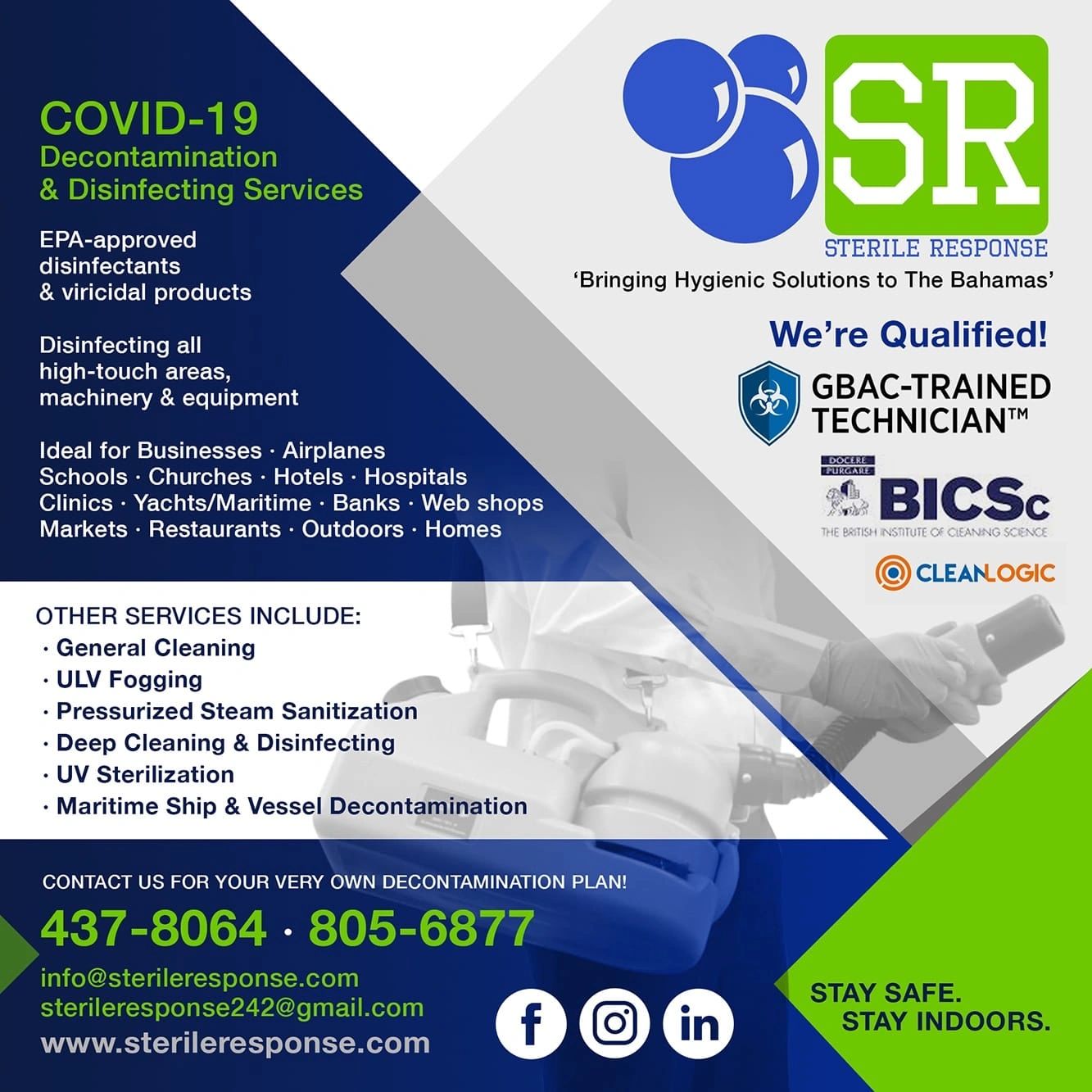 If you’re an essential business operating at this time, keeping your workplace safe and free from infection is likely a primary concern as despite best efforts, a COVID-19 case may impact your business. The Bahamas' DEHS reopening guidelines call for every business to “clean and disinfect all areas…routinely.” Also, at this point it is clear that individuals can be asymptomatic and still transmit COVID-19, so necessary actions have to being taken across every organization that has its doors open.